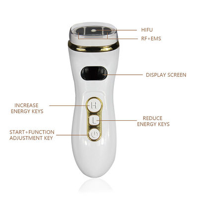 أداة الترددات الراديوية UItrasonic هي أداة ثلاثية الوظائف في واحد تدمج الموجات فوق الصوتية / RF / الكهرباء الدقيقة.نقطة التركيز بالموجات فوق الصوتية HIFU تعمل على طبقة SMAS في جسم الإنسان لإعادة تنظيم الكولاجين في أنسجة SMAS دون إضرار الأنسجة الطبيعية، وبالتالي تحقيق تأثير رفع الفاسسيا؛ ترددات الراديو RF يمكن أن تنبعث 1 مليون موجة دقيقة في الثانية لتسخين الجلد عميقا، فتح المسام هو مناسب لرعاية الجلد والتنظيف الأخرى;وظيفة النبضات الكهربائية الدقيقة في نظام EMS يمكنها رفع وتشديد الجلد وتدليك الجلد.